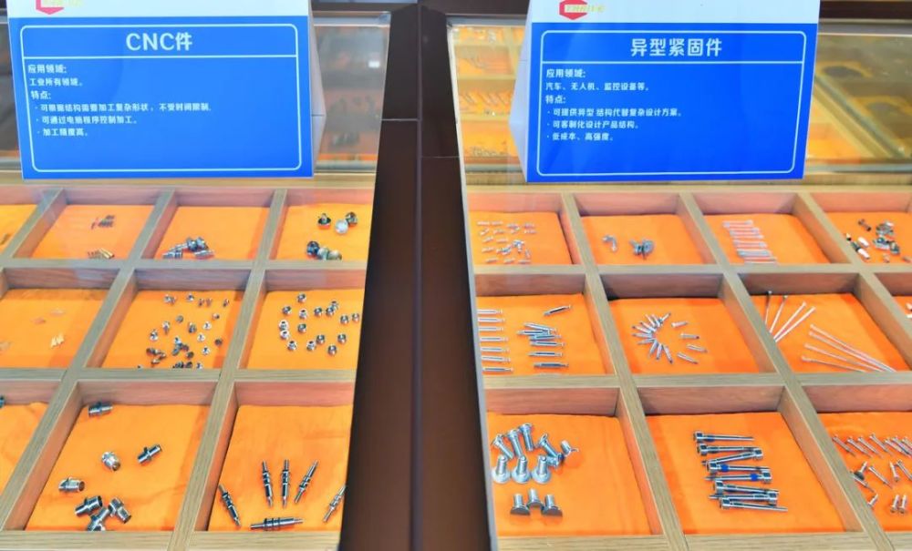 企业展示的各类紧固件产品。